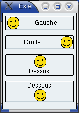 Le bouton sur l'exemple ci dessous aura en même temps un libellé et une image 'happy.png'. L'image apparaîtra à gauche du libellé. Vous pouvez changer cette position en utilisant deux autres attributs. Ceci sera expliqué dans un moment.