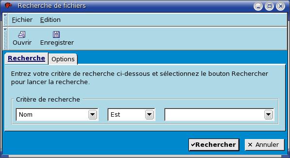 Après ces changements, la boîte de dialogue de recherche de fichiers apparaît maintenant comme ceci :