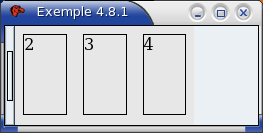 Une image des quatre cadres avec le séparateur redimensionné vers la droite est montrée ci dessous. Notez que les deux cadres du milieu n'ont pas changé leur dimension. Seuls les premier et quatrième cadres ont changé de dimension. Vous pouvez seulement voir une partie du quatrième cadre. Si vous continuez à déplacer le séparateur vers la droite, les deux autres cadres vont se réduire.