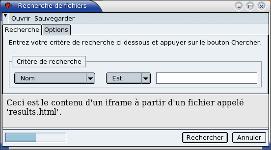 Voyons ce que deviens notre exemple de recherche de fichiers avec un séparateur. Une possibilité serait d'inclure les résultats de la recherche dans la boîte de dialogue. Nous ajouterons une zone entre les critères de recherche et les boutons du bas. Un séparateur permettra de réduire ou masquer les résultats de la recherche.